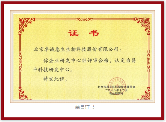 2018年12月,北京市昌平區(qū)科學(xué)技術(shù)委員會認(rèn)定北京卓誠惠生生物科技股份有限公司研發(fā)中心為昌平科技研發(fā)中心,并頒發(fā)榮譽(yù)證書,熱烈祝賀?。?!